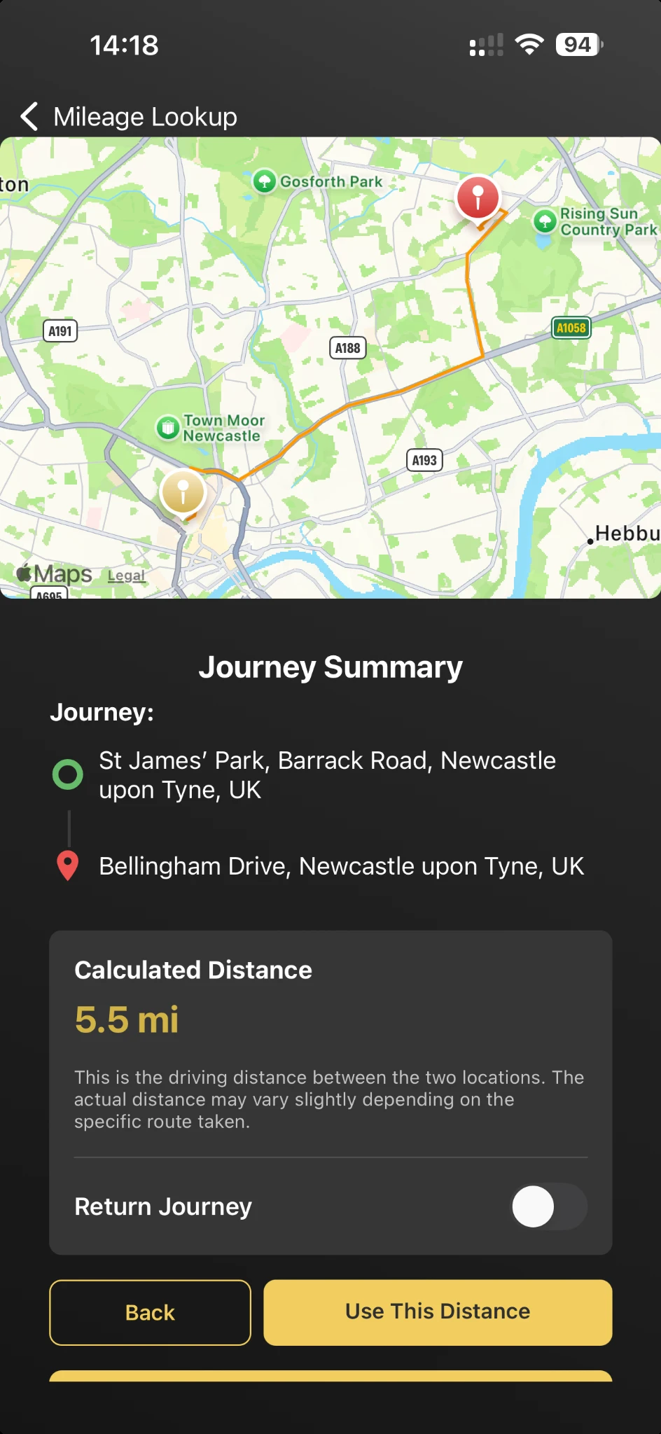 Share your navigation route from Apple Maps or Google Maps directly to MileEZ to automatically add mileage. No manual entry needed—just navigate as usual and let MileEZ capture the distance from your route for accurate mileage tracking.